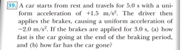 It travels at this velocity for 5 seconds and then a brake is applied to bring it to rest in the next 5 seconds. B How fast is the car going at the end of the braking period. It then runs at a constant velocity and is finally brought to rest in 50m with uniform retardation.